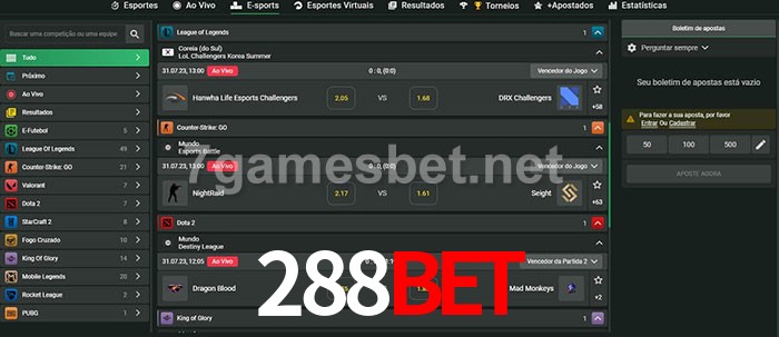 O 288Bet oferece uma grande seleção de opções de apostas em e-sports com probabilidades competitivas